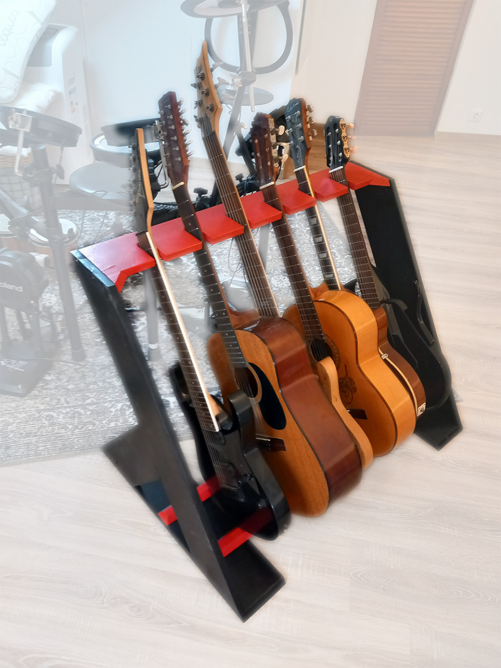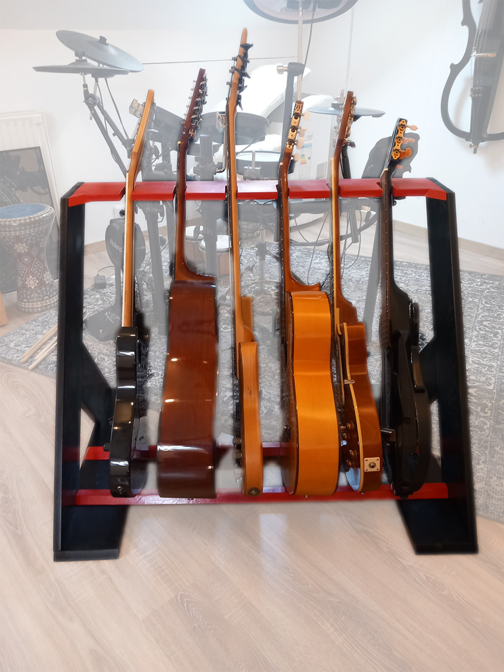 A Serenova minimalista gitárállvány egyszerűsége és stílusa révén egy igazán letisztult választás. Az elegáns, geometriára épülő dizájn tökéletesen illeszkedik bármely modern térbe, miközben biztosítja a stabil tárolást a gitároknak. Az erős, de könnyű konstrukció, valamint a gondosan megtervezett, finoman elhelyezett támaszok minden hangszer számára biztosítják a kényelmes és biztonságos tárolást.